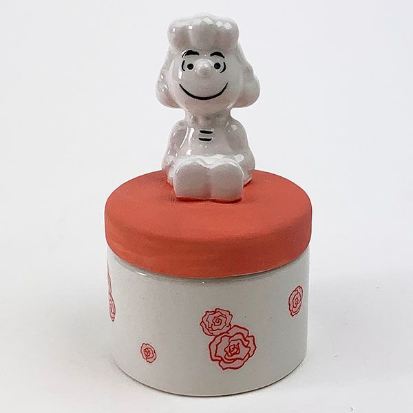 スヌーピーのアロマディフューザーです。ポットの部分はガラス製、フタとフィギュアは陶器でできています。ポットにお好きなアロマを適量いれていただくと陶器のフタから揮発し、香りが広がります。