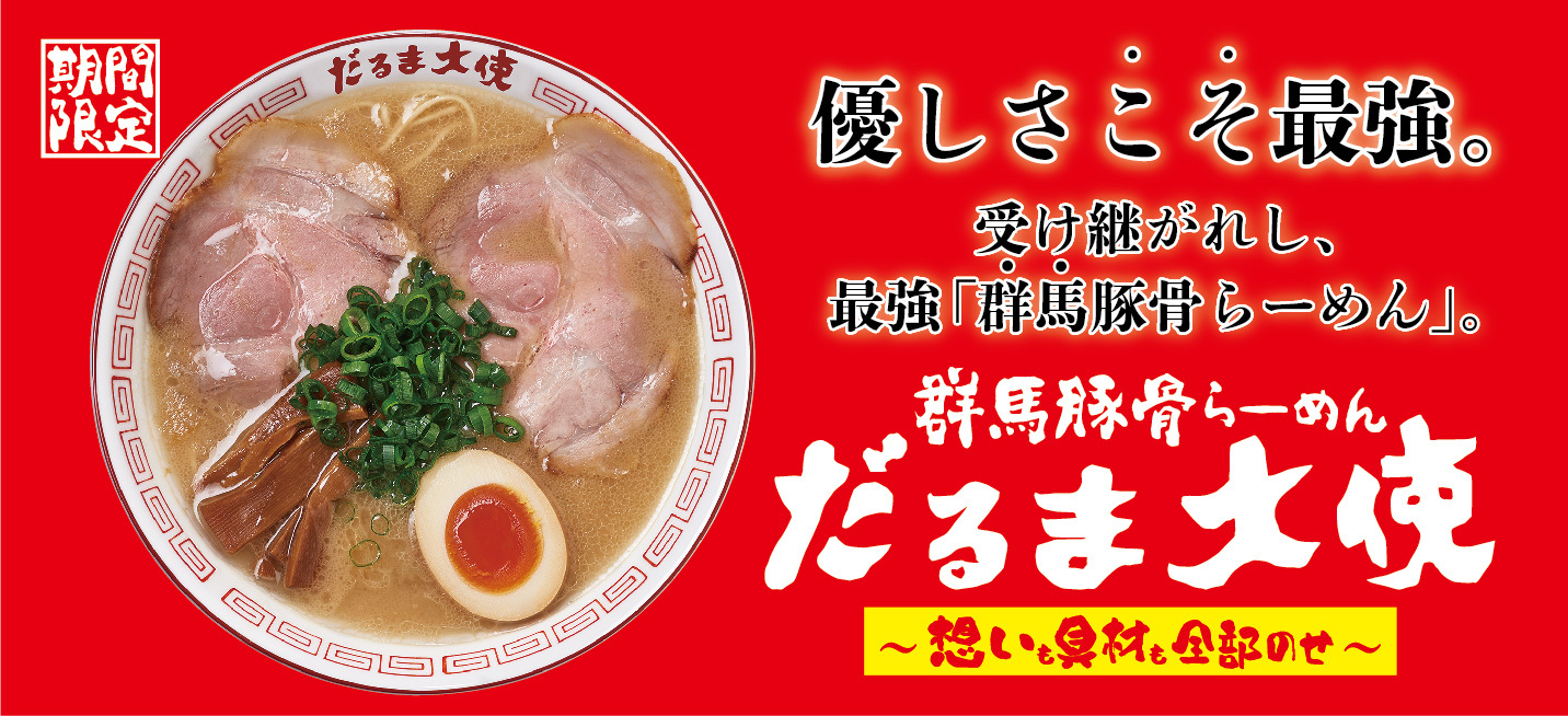 “群馬豚骨”への熱い情熱が宿る、だるま大使コラボでしか味わえない特別な一杯を、是非この機会にお召し上がりください。
