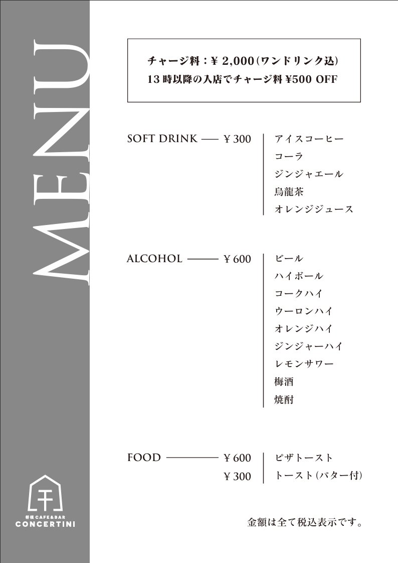 店舗名 将棋cafe&bar 「concertini(コンチェルティーニ)」