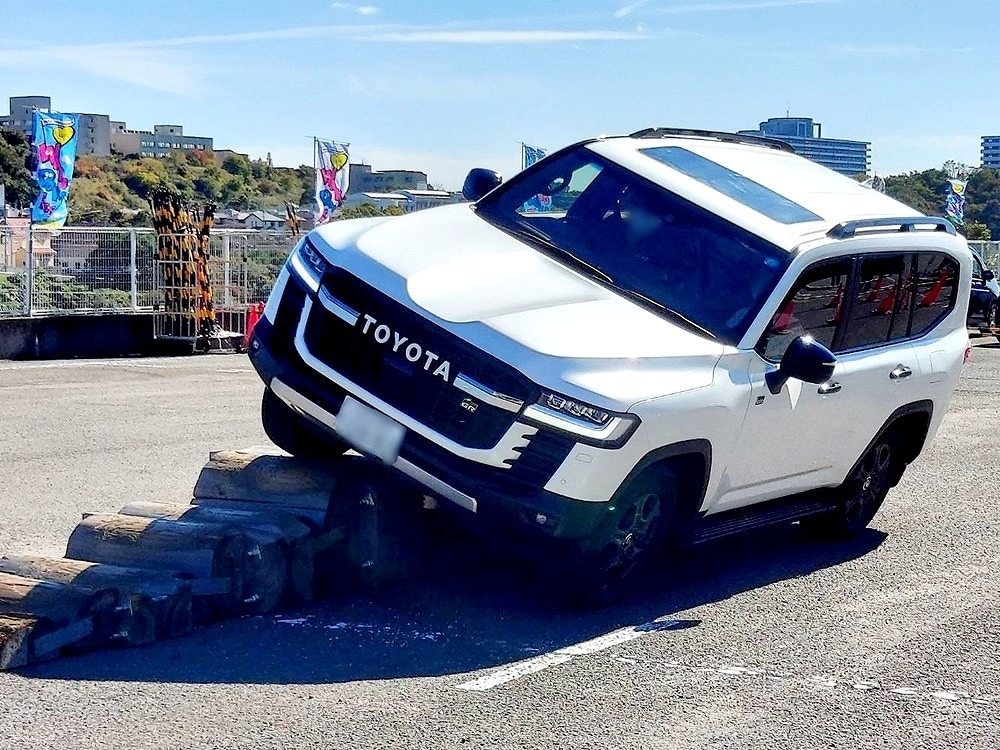 ランドクルーザーFESのコーナーでは、インストラクターが運転するランドクルーザーに同乗して急勾配を走破し、オフロード性能をリアルに体感することができます。EVキッズカートでは、EVを動力としたお子様用カートで会場内のコースを走行することができます。