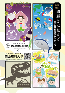 きびだんごの理大パッケージは、恐竜、好適環境水、ワインプロジェクト、動物とヒトの豊かな生活をめざす「いきものQOL」キャンペーンという理大を代表する4つの研究テーマのイラストを描いており、今年6月に発売されました。