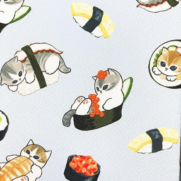 モフサンドたちがお寿司に、、!おいしそうなお寿司にモフサンドが愛らしく、ついつい食べたくなるかわいさかも、、!!?ちりめんに和柄ということで猫好きの海外の方へのお土産としてもお勧めです。