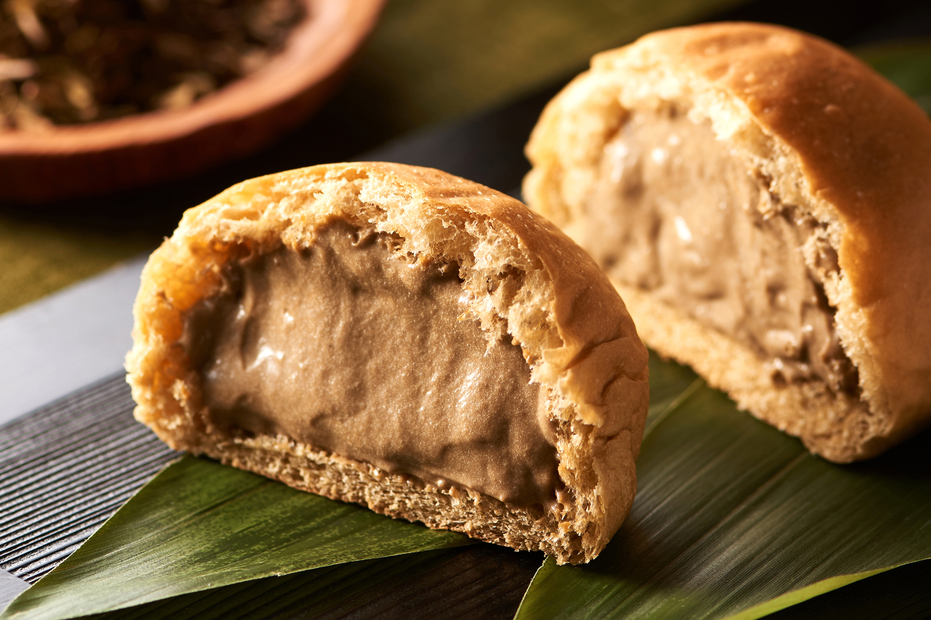 抹茶を使用したふんわり柔らかなパン生地に、特製のクリームと抹茶あんを2層仕立てで入れました。抹茶あんは、抹茶と相性の良いミルクあんをベースに、抹茶を贅沢に混ぜ合わせております。特製のクリームを一層足すことで、なめらかなくちどけとコクが加わり、抹茶あんの味わいを引き立てます。