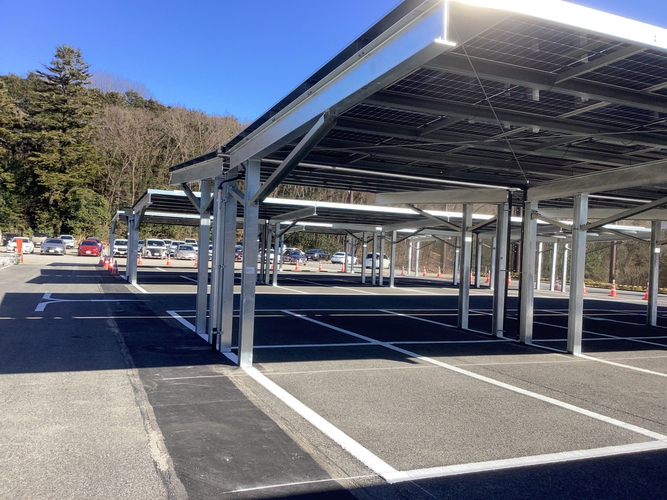 太陽光発電設備を搭載したカーポートを、ソーラーカーポートと呼びます。当社グループでは、ソーラーカーポートをゴルフ場の駐車場に建設、発電した電気をクラブハウスで利用することで運営ゴルフ場における脱炭素を推進しています。現在、「スパ&ゴルフリゾート久慈」・「中京ゴルフ倶楽部 石野コース」・「瀬戸内ゴルフリゾート」においても既存設備が稼働中です。