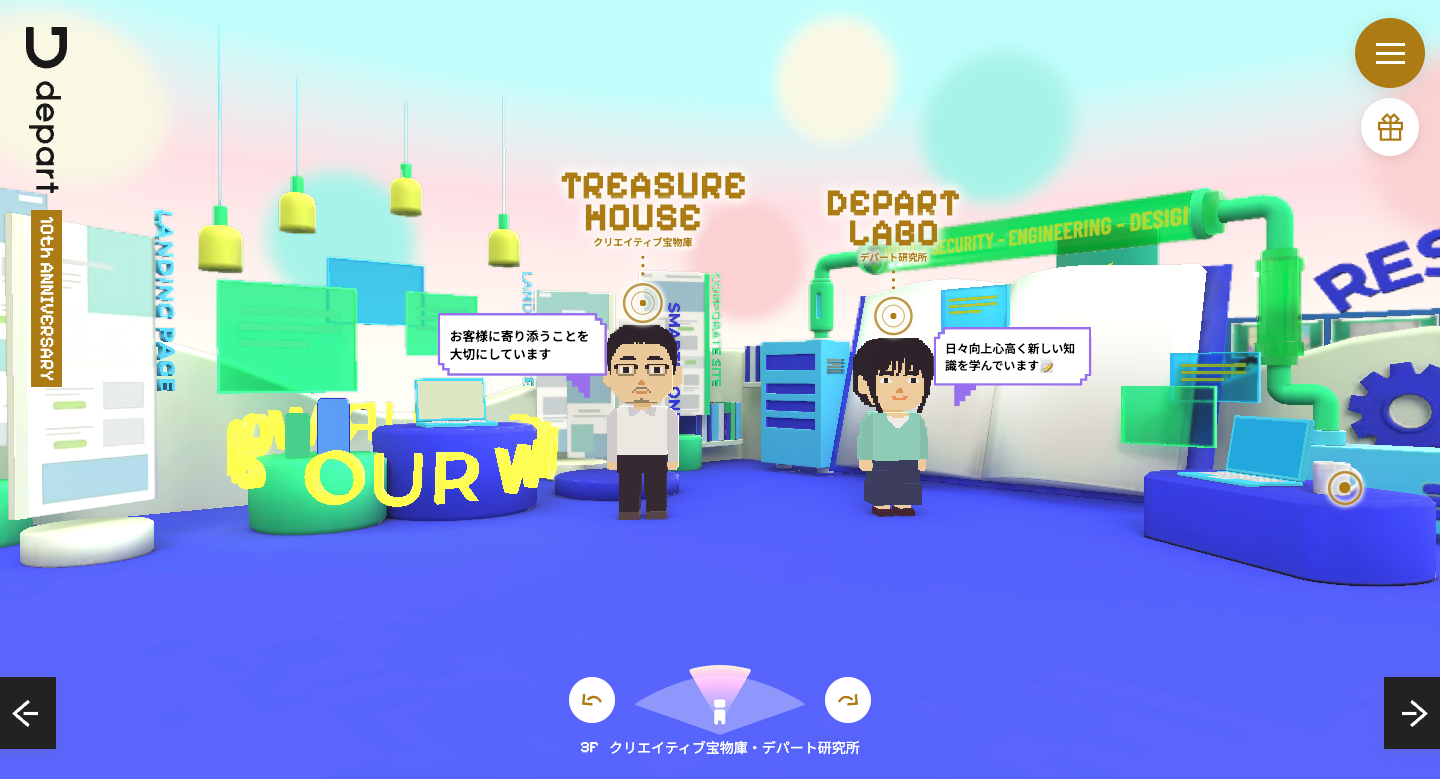 多くのご支援・ご愛顧に感謝の意を込めて、長年の歩みを振り返るとともに今後のビジョンを可視化し、デパートという会社をより深く理解してもらうことを目的とし、周年記念の特設サイトとして、Web上にデパートを建てることにしました。