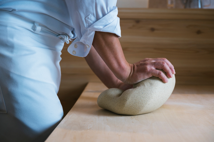 店内には製麺機やそば打ちの工程が見えるスペースを設置。また、オープンキッチンでは調理の様子を間近で楽しめ、そばの香ばしい香りや調理音が五感を刺激する臨場感あふれる空間となっています。