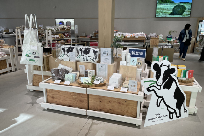 約1,200件の公募から名前が決定した、那須千本松牧場の公式キャラクター「セボン」のフォトスポットが千本松テラスの中に新設され、循環型酪農の取り組みを伝えるオリジナルグッズなどもファームショップで展開しています。