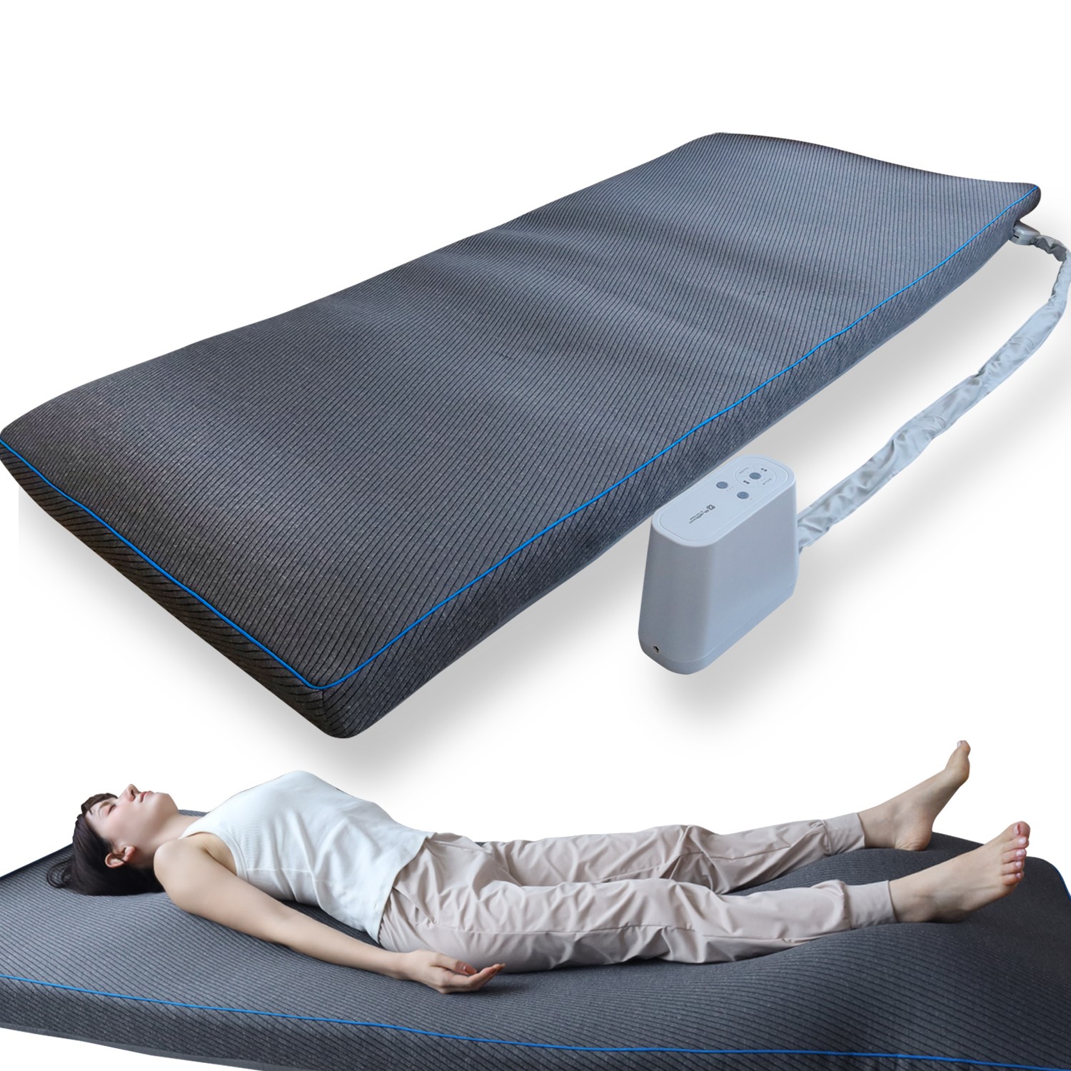 スイッチを押すだけでマットレスが自動で全身のストレッチを行い、体をリラックス状態に導きます。これにより寝る前の心身を整えることで、心地よい眠りへとスムーズに移行できます。