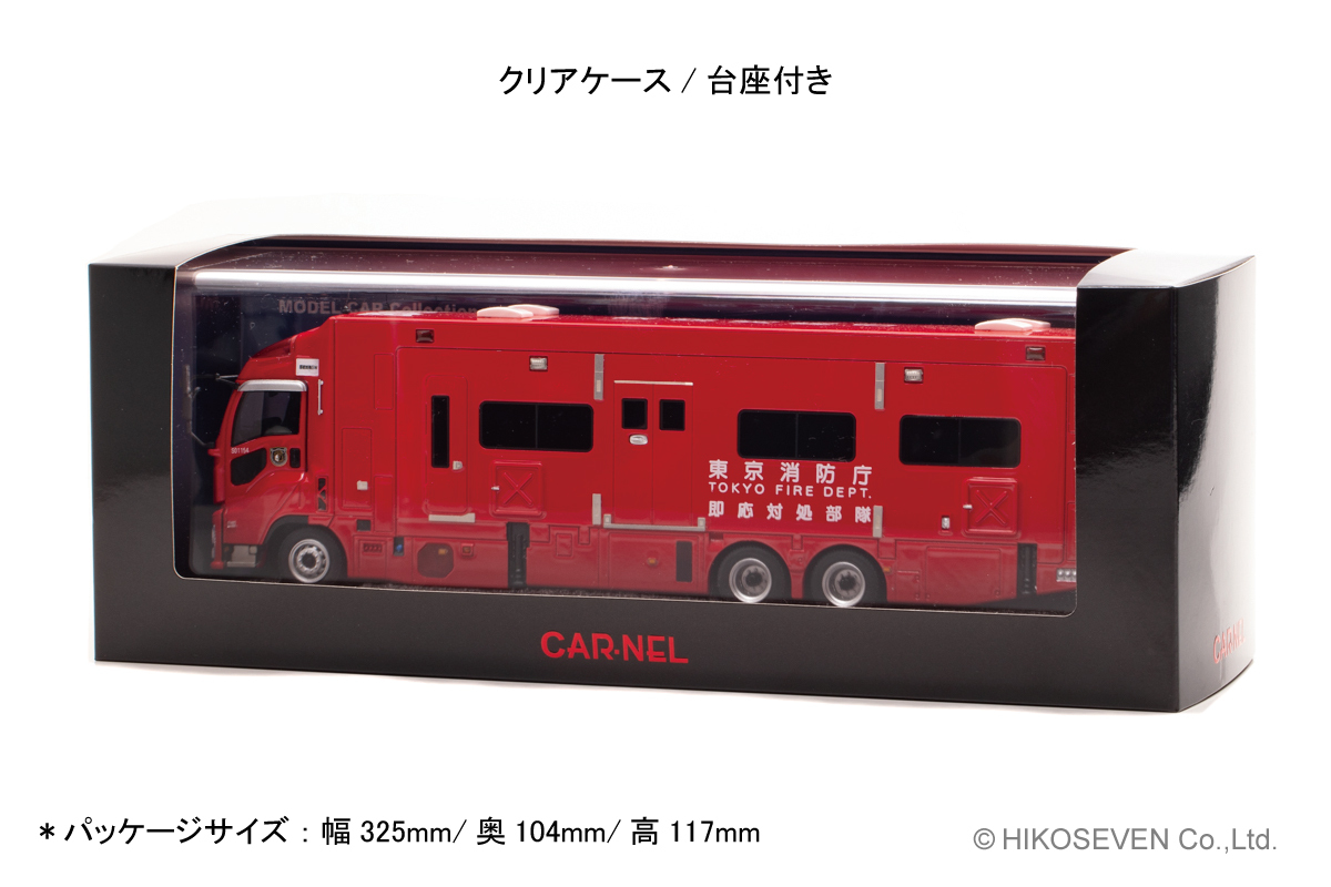 株式会社ヒコセブン(所在地:神奈川県横浜市、代表取締役:原島 行雄)は、オリジナルブランド「CARNEL」からレジン製1/43スケール(全長約27.5cm)、いすゞ ギガ 2019 東京消防庁即応対処部隊高機能指揮支援車を2023年8月9日より直営店の「モデルギャラリーHIKO7」及び全国模型店にて予約開始いたしました。