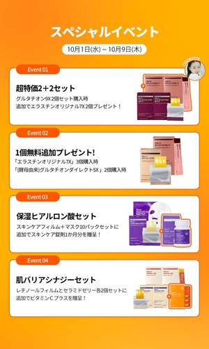 このたび2025年10月1日(水)から10月9日(木)まで開催されるQoo10メガポではおまけ付きスペシャルコラボ企画セット、メガポ限定超お得な「保湿ヒアルロン酸セット」、「肌バリアシナジーセット」が新登場します!秋の「新習慣」でさらに輝かしい肌に!その他、豪華なイベントも開催予定ですので、この機会をぜひお見逃しなく!実りある秋を楽しみましょう!