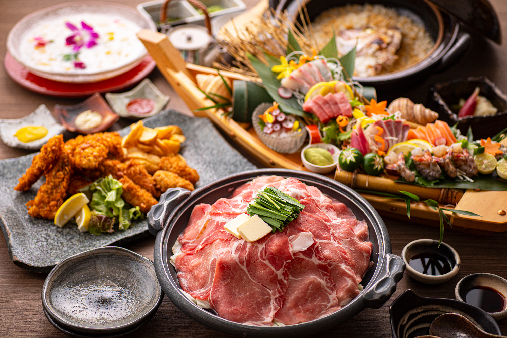 旬和席うおまん 海鮮舟盛りと豚の陶板焼きの名物鯛めしコース/飲み放題付