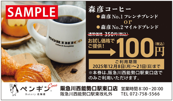 【各日400枚限定】 次回から使える! 森彦コーヒー100円チケット プレゼント!