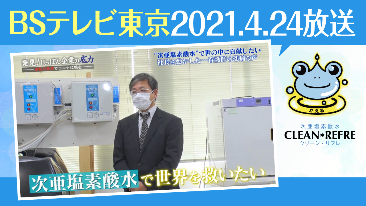 株式会社武蔵野(本社:東京都小金井市、代表取締役社長:小山 昇)が販売する次亜塩素酸水「クリーン・ リフレ」を4 月 24 日(土)放送 BS テレビ東京 特別番組「発見!にっぽん企業の底力〜逆転の発想でコロナに挑む〜」でご紹介いただきました。その模様を5月17日(月)発売の日本経済新聞全国版の朝刊にて、放映後レポートとして掲載いただきました。