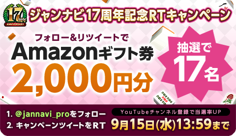 「ジャンナビ麻雀オンライン」17周年記念キャンペーン開催!!