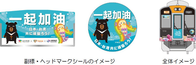 列車装飾では、阪神線で運行する桃園メトロラッピングトレイン(以下「桃園メトロ号」)を活用し、(1)「新型コロナウイルス感染症の早期収束」への願いを込めた副標・ヘッドマークシールの掲出、(2)台湾の観光地を紹介する車内装飾を行います。