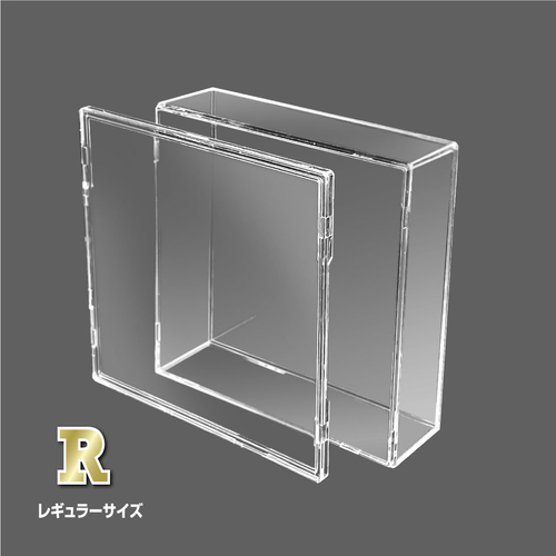 トレーディングカード未開封ボックスをそのまま保護&コレクションできるアイテムです。シュリンクフィルムがついた状態でも収納可能。サイズは、レギュラーサイズ・ハーフサイズの2サイズ展開です。ポケモンカードや遊戯王カードの未開封ボックスを収納できるサイズに設計しています。