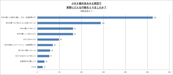 うち、実際に「物件を購入して住みかえた」または「賃貸で住みかえた」人は約22%(130人)。