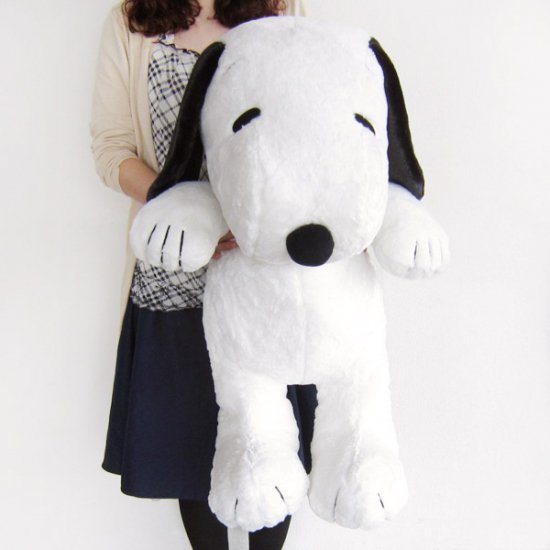 次に紹介するスヌーピーのぬいぐるみは、もっと大きいですよ♪サイズは、高さ110cm(座高70cm)×横幅70cm×奥行50cmです。超ビッグ!!!