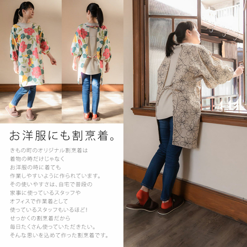 家事や料理など作業時の汚れ防止に、着物だけでなく普段着の洋服にも合わせていただけます。