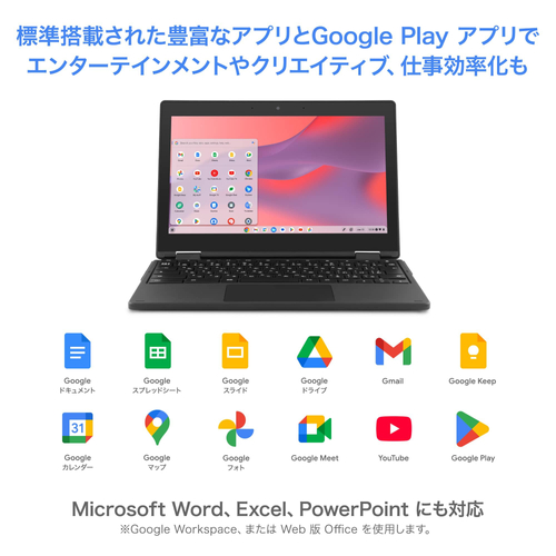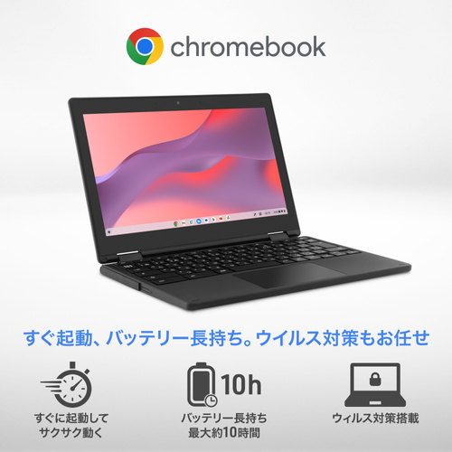 Chromebookは、さまざまな作業をさっと簡単にこなせる新しいタイプのパソコンです。クラウドストレージや便利な Google アプリ、何層ものセキュリティが組み込まれたChromeOSを搭載。 Google アカウントを使用してファイル、写真などを開いてすぐにアクセスできます。