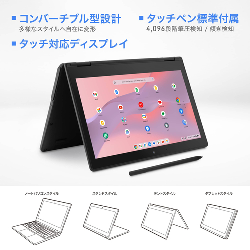 小型で堅牢、あらゆるシーンで活躍する2in1コンバーチブル型 aiwa初の Chromebook™が 本日3月21日より販売開始!