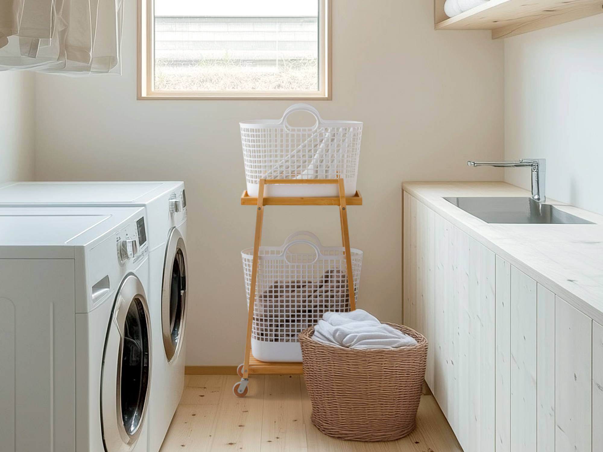 生活用品ブランド「ライクイット」から すき間で使えるスリムな竹製収納用品 『バンブーランドリーワゴン(バスケット付き)』新発売!