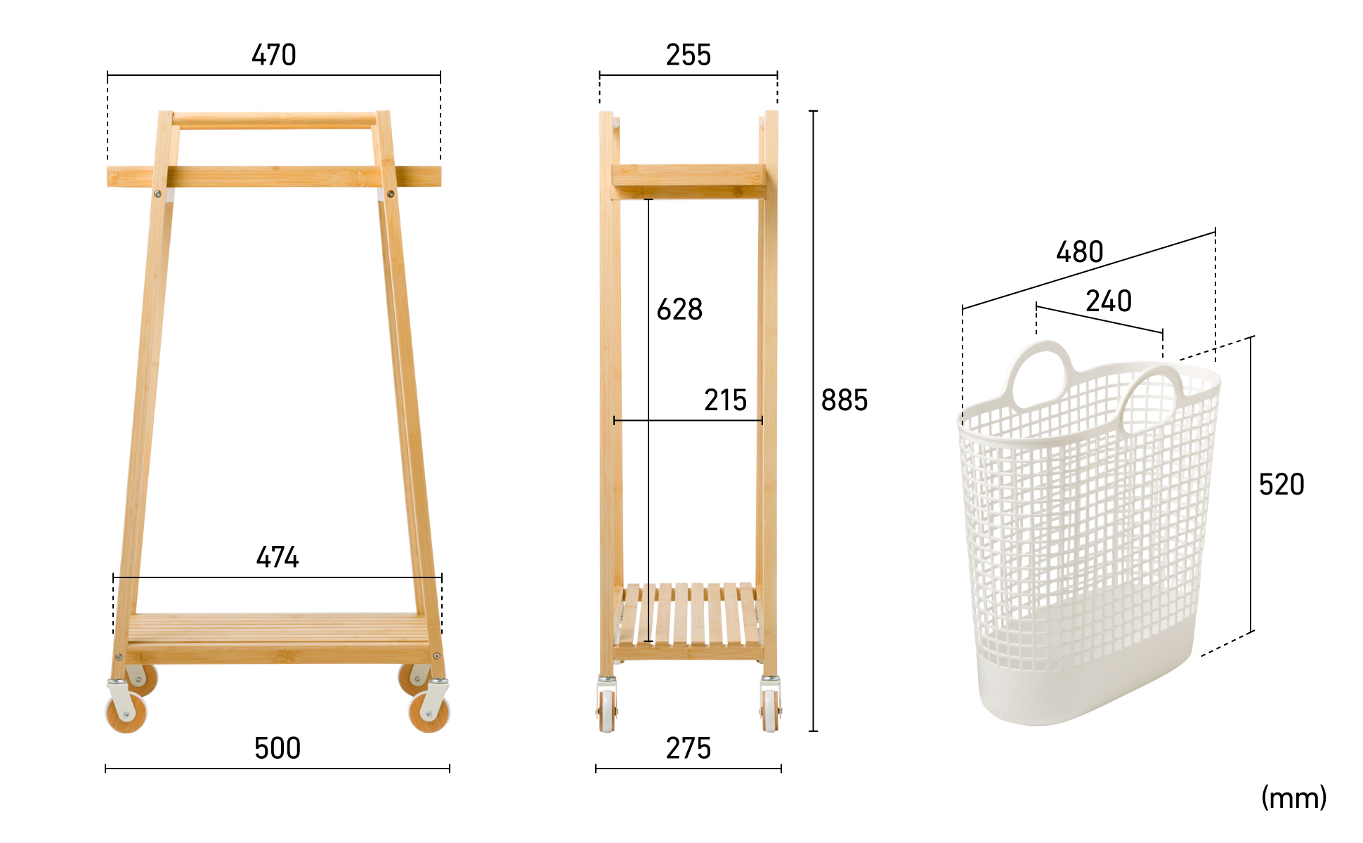 ・材質 :ワゴン/竹 バスケット/ポリエチレン