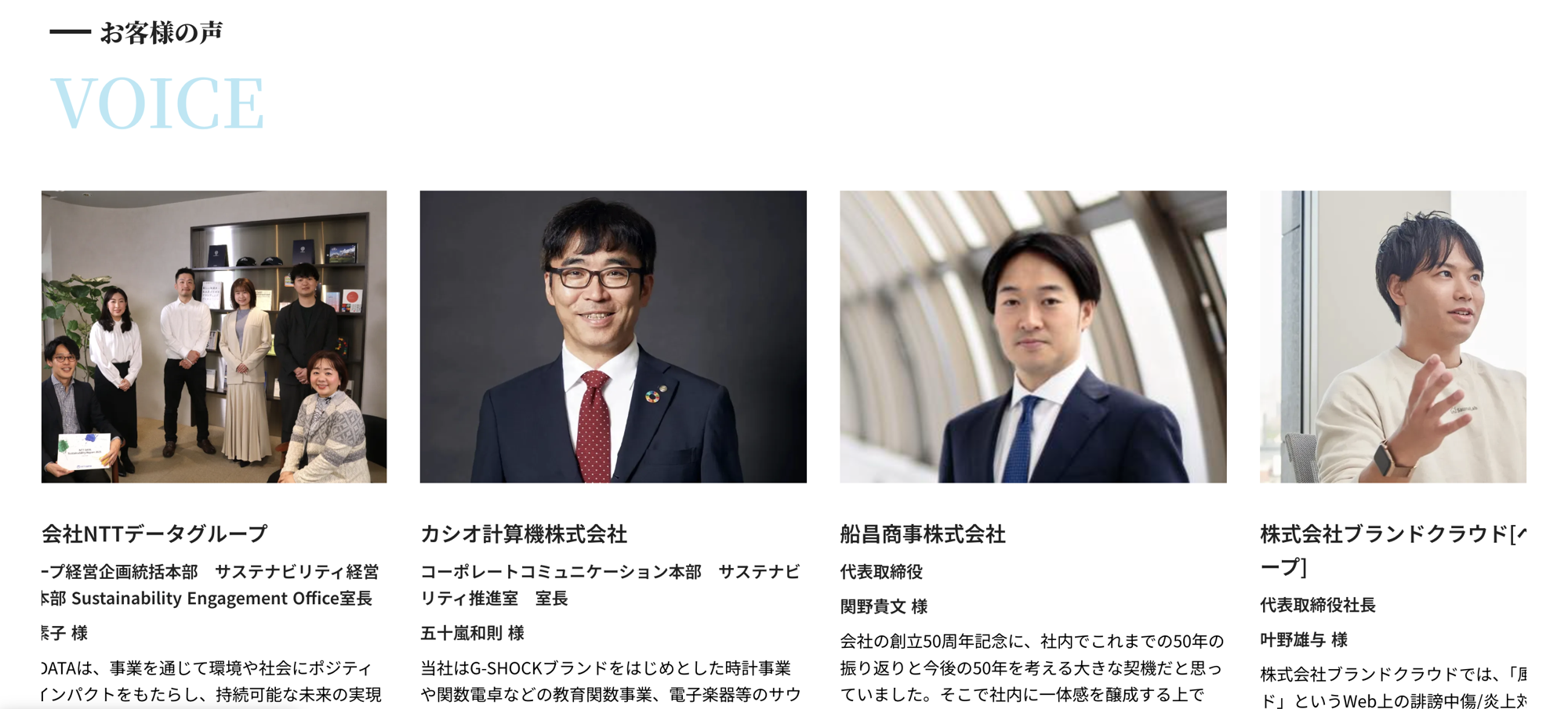 弊社のサービスを実際にご利用いただいた企業様による「お客様の声」を掲載しております。私たちが提供する伴走支援の内容や、共創によって生まれる変化のイメージをより具体的に描いていただくための参考として、ぜひご覧ください。