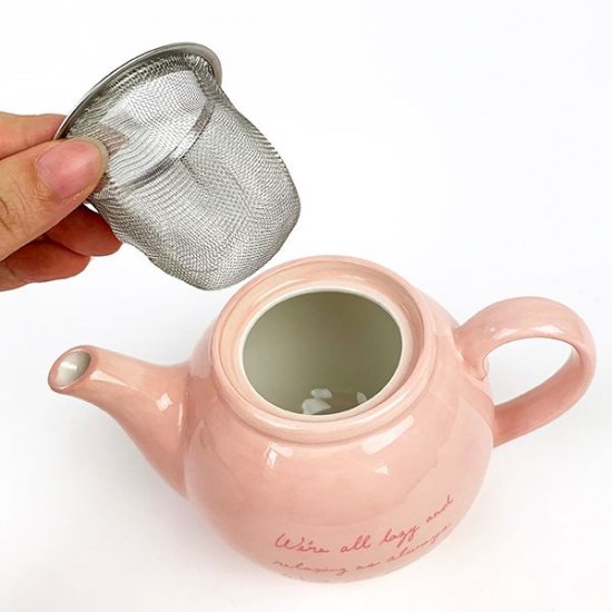 コリラックマちゃん、ちょっと失礼しますよ~とフタを開ければ、茶こしもちゃんと付いています。これならそのまま茶葉を入れても大丈夫ですね。