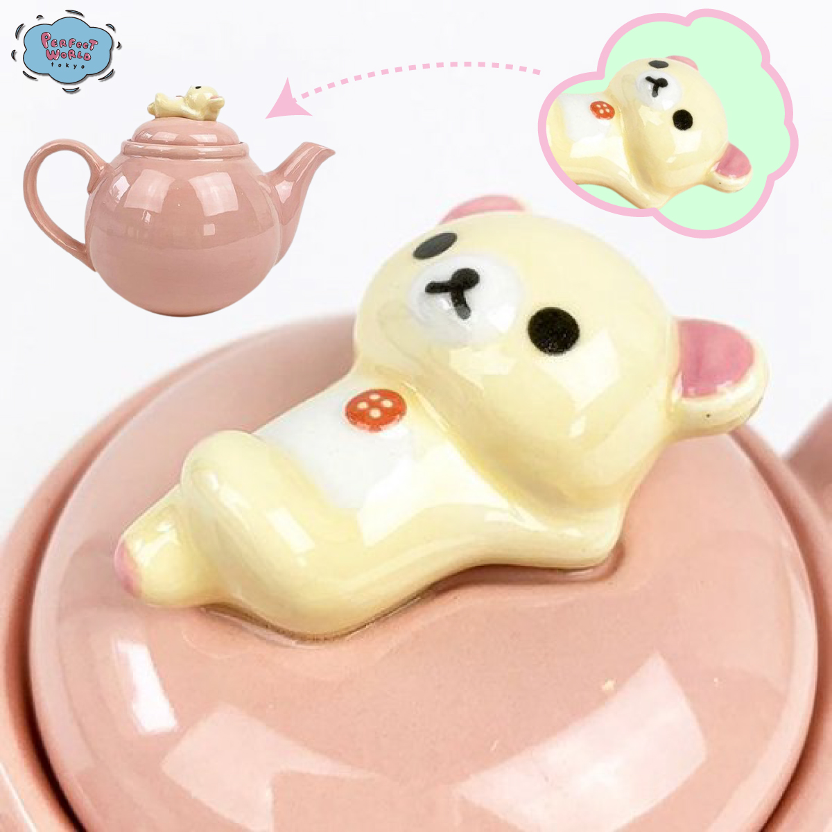 かわいい,グッズ,新着,パーフェクトワールド,パーフェクトワールドトーキョー,ヒットアイテム,キャラクターグッズ,リラックマ,コリラックマ,ピンク,ティーポット,ポット,食器,フィギュア,急須,