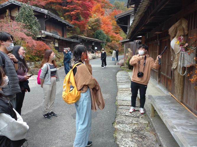 SAで最初に参加したのは、外国人留学生向けのキャンパスツアーです。英語が話せる学生を募集していたので、力になれるかなと思ってすぐに手を上げました。ほかにも伊勢神宮や南木曽へフィールドトリップに出かけたり、日本語学習の支援をするスピーキングパートナーをしたりもしています。