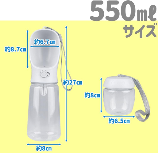 このウォーターボトルは、ペットが必要とする水分をいつでもどこでも簡単に補給できるように設計されています。散歩時だけでなく、ドッグランやペットとの旅行時も、このウォーターボトルがあれば、水分不足を気にすることなく、安心して外出できます。