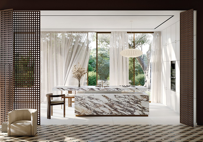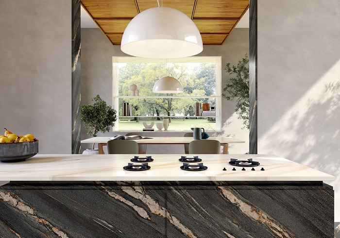 これまで壁や床に「張る」装飾材であったタイルは、空間そのものを「創造する」マテリアルへと進化を遂げました。TILURAのメインマテリアルである「4D CERAMICS」は、独自の製造技術によりタイル内部まで柄が連続するフルボディ構造を実現。切断面や小口にいたるまで、まるで天然石のような美しさを表現できます。歴史ある素材と最先端技術の融合によって、永続的な美しさと普遍的価値を実現しました。高級感あふれるキッチンやリビング、洗面台をはじめ家具やオーダー什器など、幅広いシーンに「非日常」のエッセンスを取り入れることで、住宅からホテルやその他商業施設まで、あらゆる空間に時代を越える価値をもたらします。