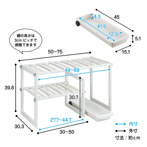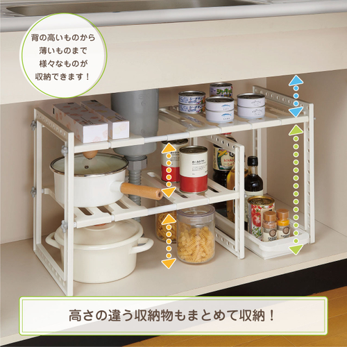 ■商品名 / トレー付き シンク下フリーラック 伸縮タイプ