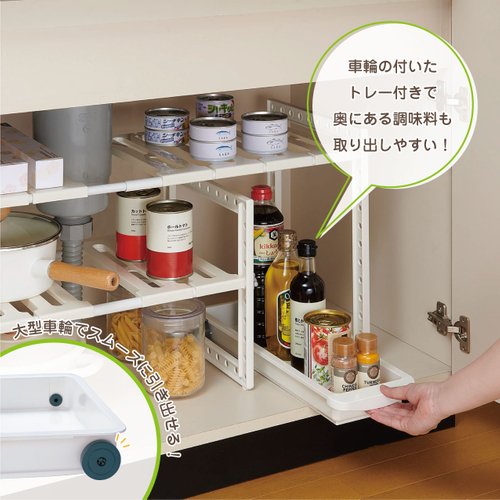 トレー付き シンク下フリーラック 伸縮タイプ