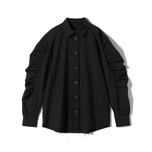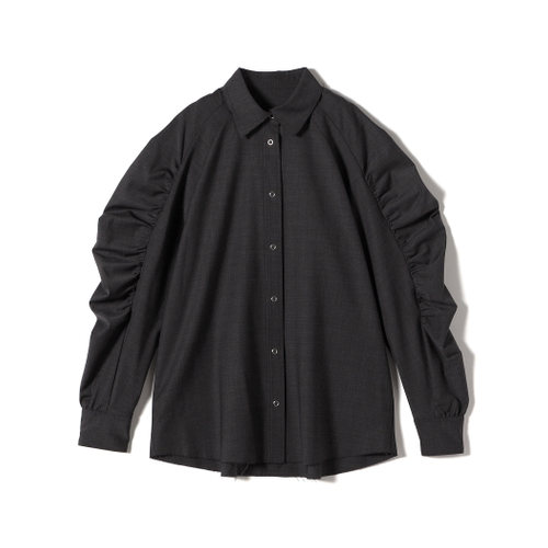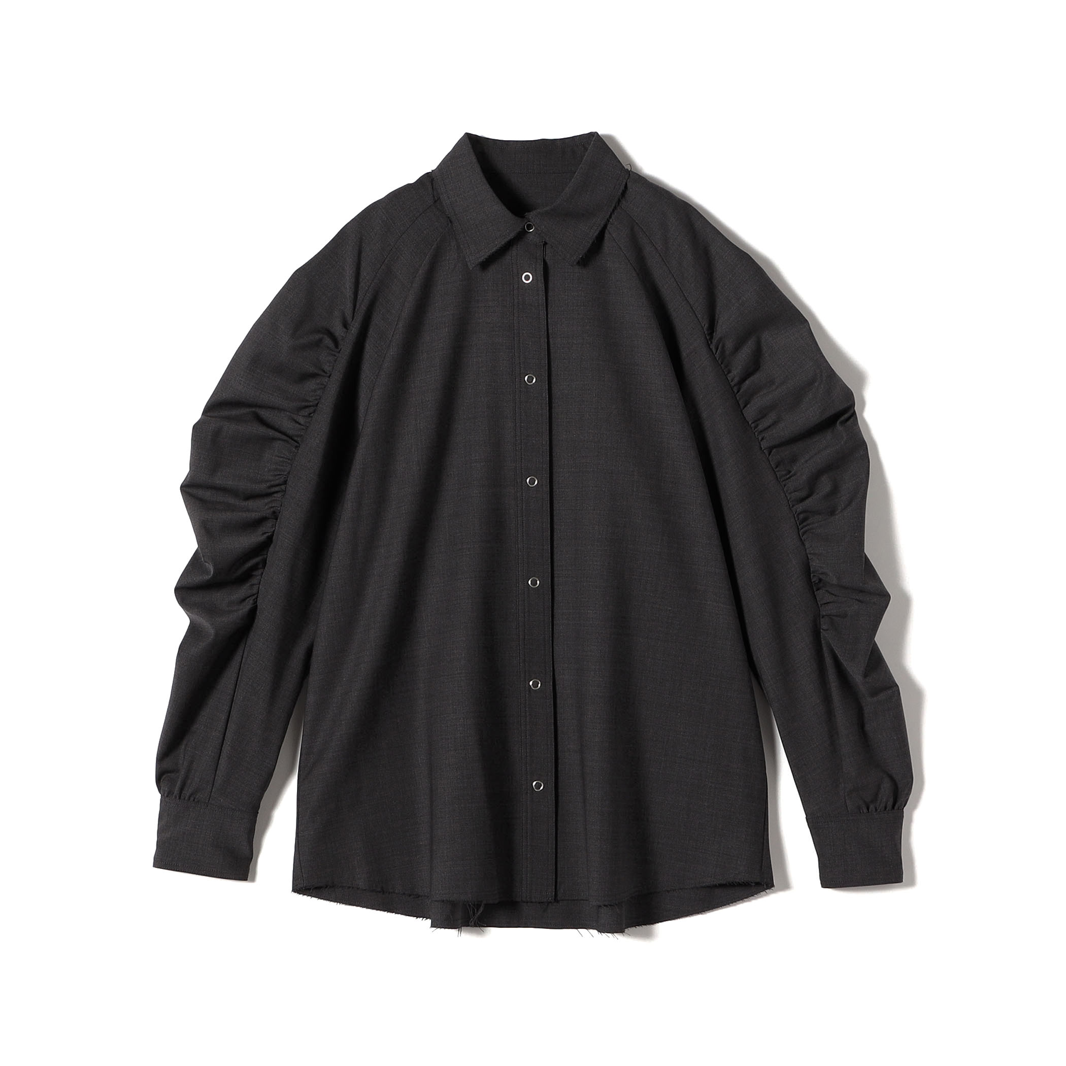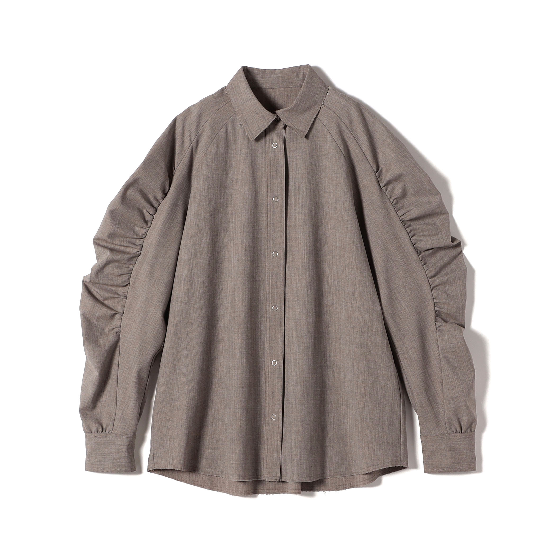 袖にギャザーをあしらった、着映えするデザインシャツ。
