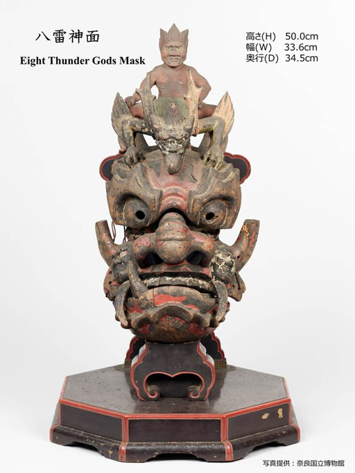 八雷神面は、中世以降、厄除け・疫病除け・雷除けの信仰対象として崇敬されてきた神面です。2024年、奈良国立博物館の特別展「超国宝」に展示されたことを契機に、その存在と歴史的価値が改めて注目されました。