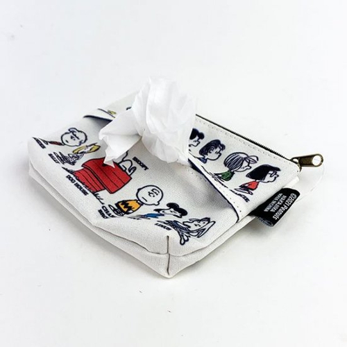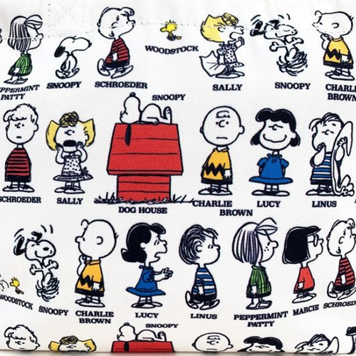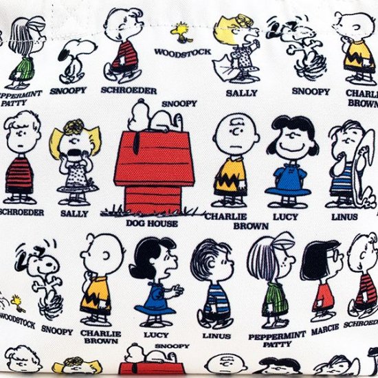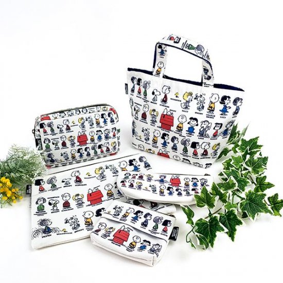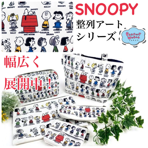 カラフル賑やかなスヌーピーの整列アートシリーズ♪ティッシュポーチからミニトートまで幅広く展開中。スヌーピーの仲間たちがたくさん☆