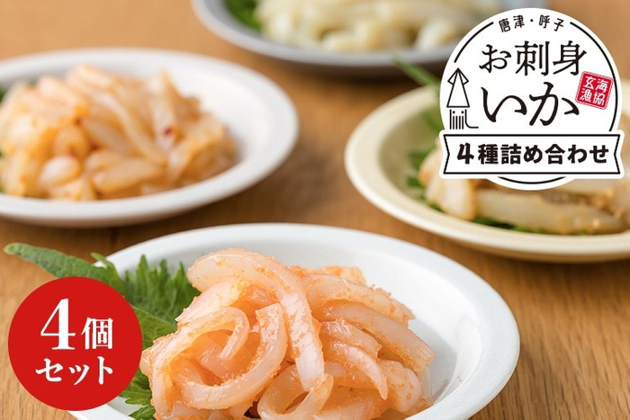呼子の新鮮な剣先いかをとれたての鮮度と旨みそのままに、こだわりの味付けで仕上げました。ご飯にもお酒にもぴったり!4種類の味が楽しめるお得なセットです。