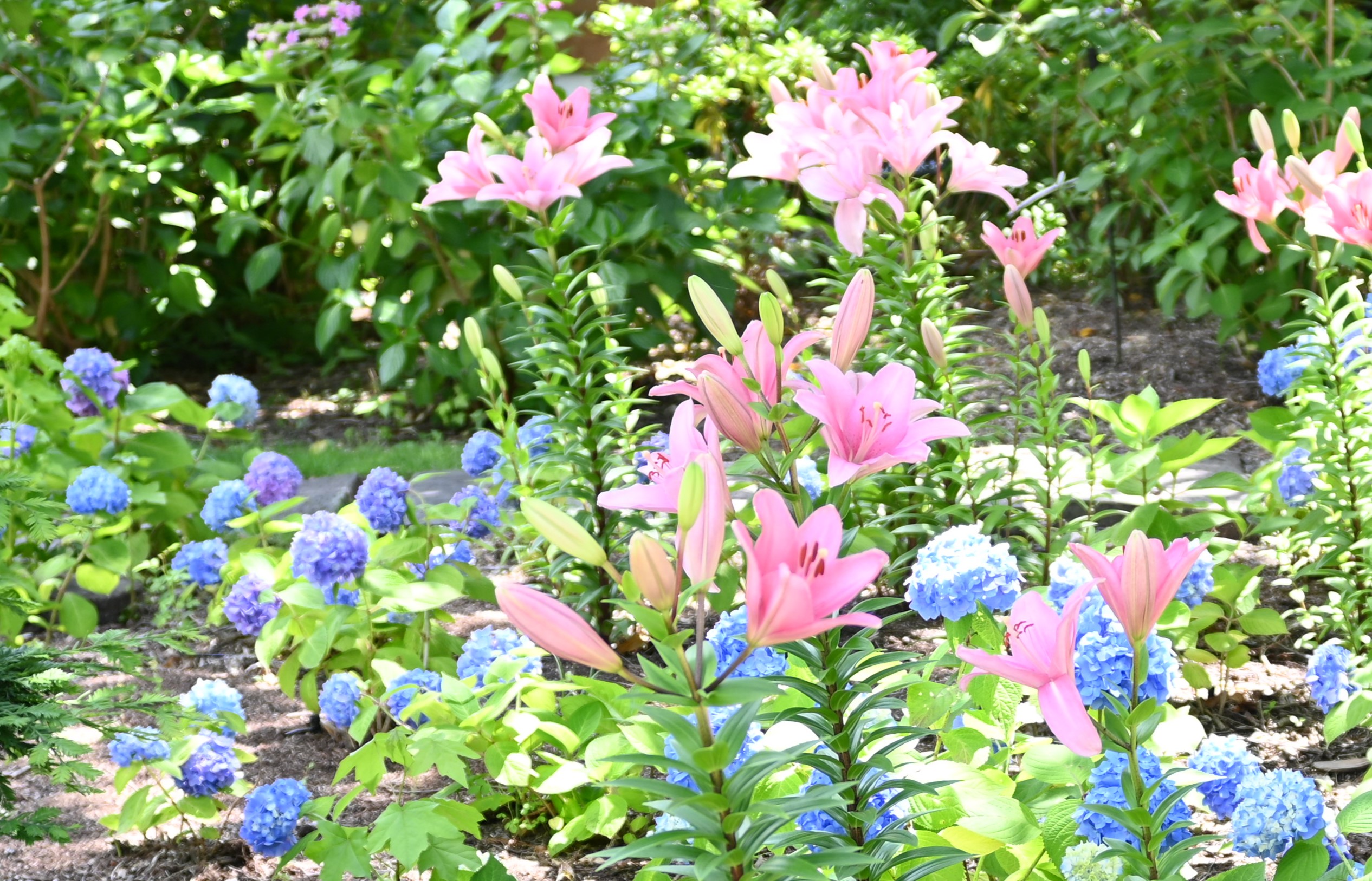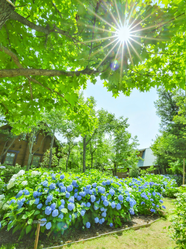 ホテル・ロッジ舞洲の広々としたナチュラリスティックガーデンでは、自然をお手本にデザインされた美しい空間で、鮮やかなあじさいと初登場のユリが見事に競演します。