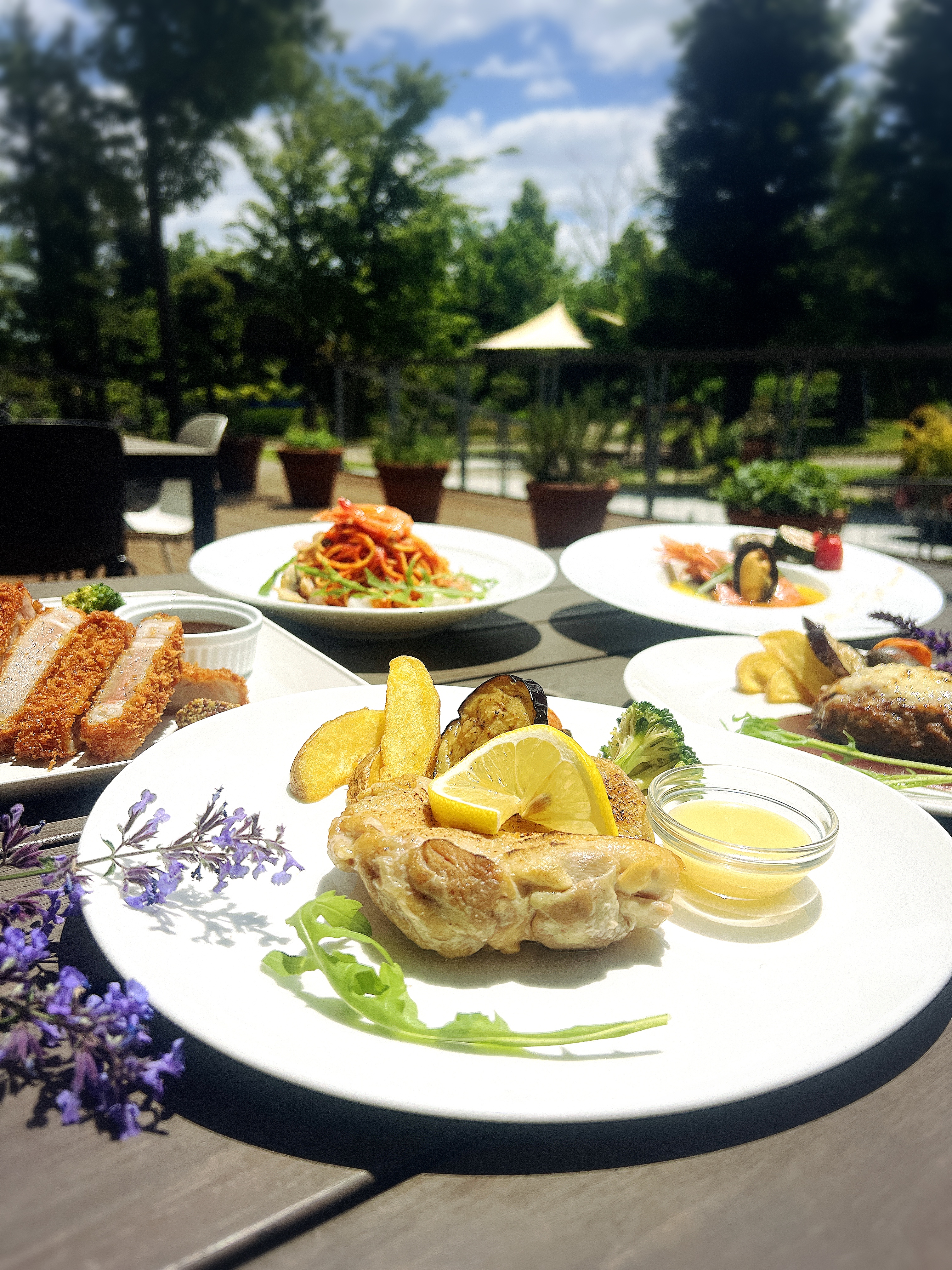 美しいガーデンを眺めながら、色とりどりのちらし寿司を含むガーデン弁当をお楽しみいただけます。