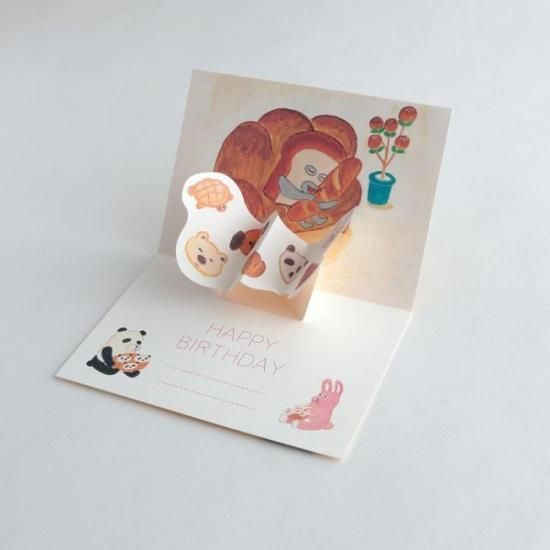 こちらは開くとテンションの上がる、ポップアップカードになっています。開くと飛び出す仕掛けに温かみのあるイラストがメッセージとともに送った相手の心をうごかしてくれそうです。【カードサイズ:100×140mm 封筒サイズ:W150×H110mm(定形外)】【セット内容:カード 1 枚・封筒 1 枚】サイズ:15cm×11cm×0.1cm 素材:紙
