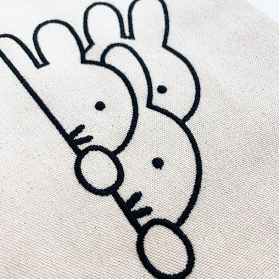 小さなミニトートバッグも、さがら刺繍です♪おめめと口だけのパーツデザインで、バッグ自体がミッフィーのお顔のよう。
