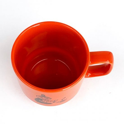 トマトカラーのリトルミィは、ティータイムを楽しみながら何を見ているのかな?マグカップの内側は同じ色で統一されています。ティータイムのほかに朝のスープを飲むのにも良さそうですね♪