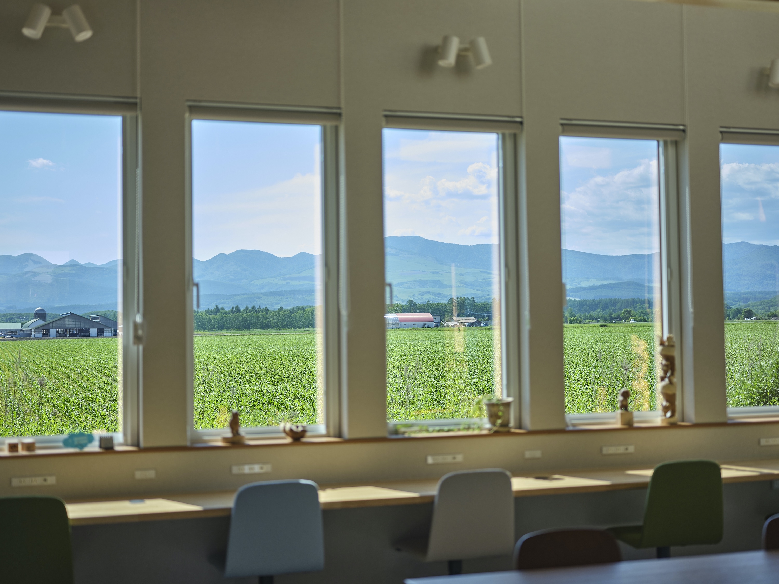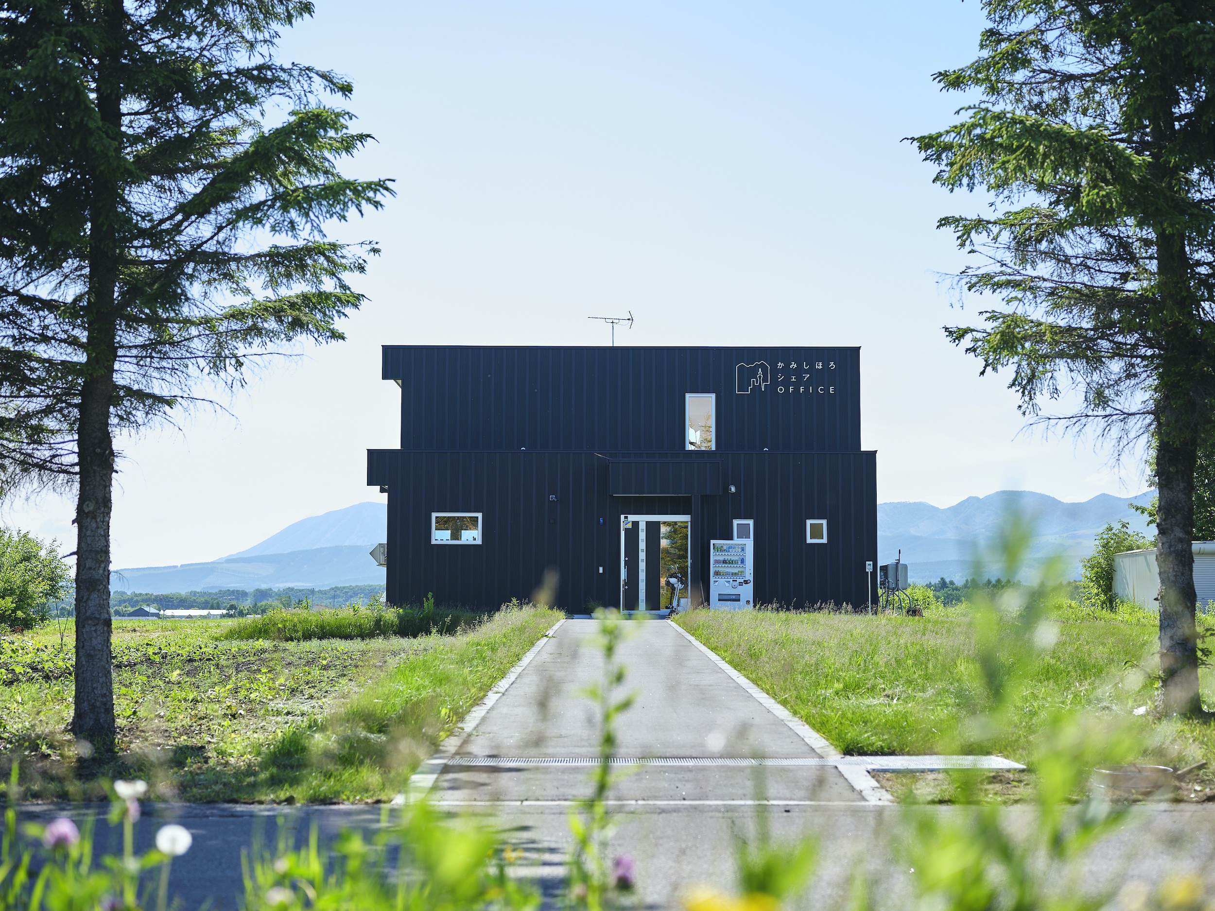 「都会と田舎をシェアする新しい働き方」がコンセプトの上士幌町唯一のシェアオフィス です。同じスペースを複数人で「シェア」するだけでなく、都会と田舎を「シェア」する新しい働き方を提案しています。北海道十勝を象徴する広大な畑のロケーションの中に位置し、窓からはナイタイ高原牧場や東大雪の山々を望むことができます。