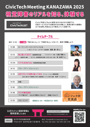 11月15日(土)開催!視覚障害のある人の“見えない世界”を体験する1日 「シビックテックミーティング金沢2025」