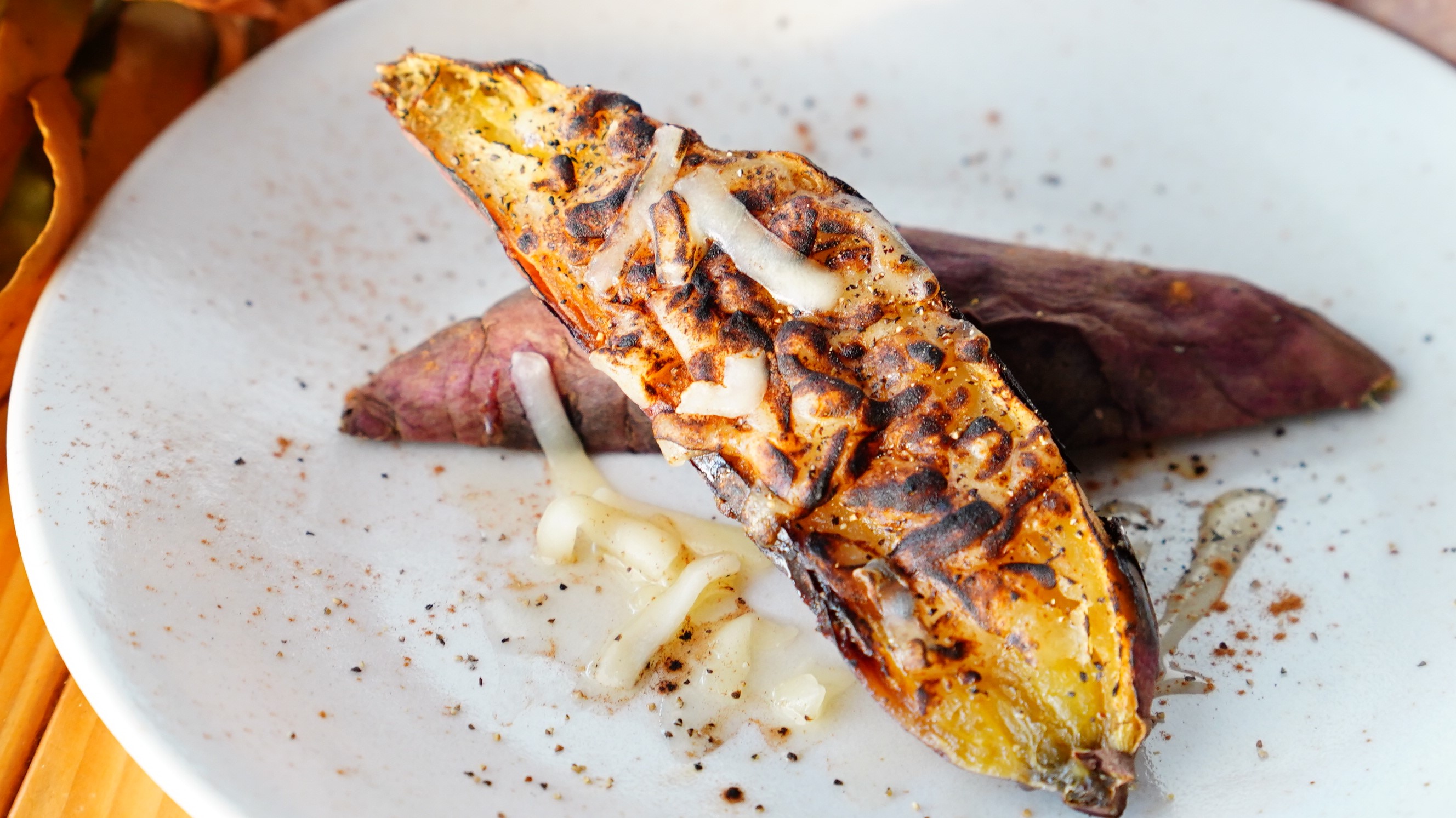 とろける炙りチーズにシナモンや黒コショウなどのスパイスをあわせた焼き芋
