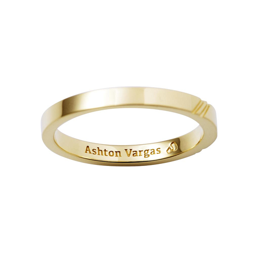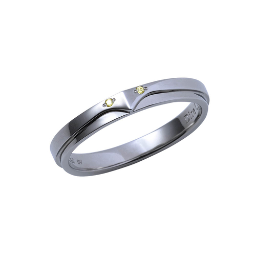 ストレートフォルムのリングに毛皮のコートの模様を取り込み、イメージカラーのホワイトのストーンをセット。内側には名前とフラスコを刻印しました。