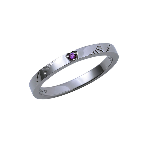 ストレートフォルムのリングに帽子の縫い目と骨を取り込み、イメージカラーのパープルのストーンをセット。内側には名前と帽子を刻印しました。