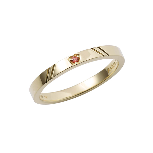 ストレートフォルムのリングにジャージの斜めラインを取り込み、イメージカラーのレッドのストーンをセット。内側には名前と笛を刻印しました。